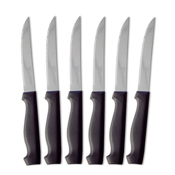 Ces 6 couteaux à steak sont très pratiques : leur lame dentée permet de couper les viandes les plus cuites. Dotés d’un manche ergonomique, ils tiennent bien en main.