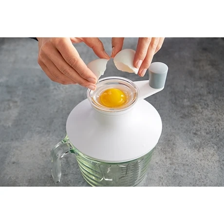 Pour des recettes effectuées avec un seul outil, un séparateur de jaune et blanc d’œufs est inclus avec ce batteur magique en verre Betty Bossi ainsi qu’un entonnoir qui s’intègrent tous deux directement dans le couvercle afin de verser les ingrédients par un trou situé au milieu. Ce système offre une plus grande homogénéité à vos recettes puisque vous pourrez continuer à tourner tout en versant les ingrédients, sans éclaboussures puisque le récipient reste fermé. Après utilisation, tout le matériel passe directement au lave-vaisselle : un ustensile pratique, écologique et très performant à petit prix.
