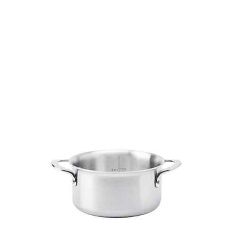 Indispensable pour cuisiner des plats mijotés, des légumes, des pâtes, faire bouillir de l’eau en quantité, ce faitout inox 16 cm Alchimy est issu de la gamme Alchimy de De Buyer. Fabriqué en inox multicouche 3-ply, avec finitions brossées, cet ustensile permet de cuisiner facilement, car il conduit de façon homogène la température sur l’ensemble de sa surface.