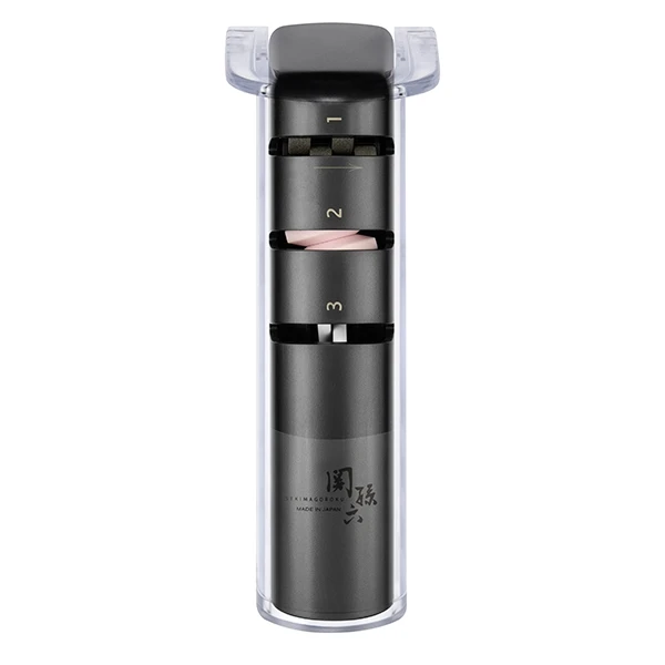 Cet Aiguiseur manuel diamant et céramique est composé d’une pierre à aiguiser diamant grain 270, ainsi que 2 pierres à aiguiser en céramique grains 150 et 1000.