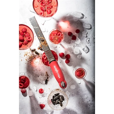Dans son coloris flamboyant rouge grenade, l’incontournable zesteur Premium Classic Microplane fera tout son effet. Recconue mondialement pour la qualité de ses râpes et zesteurs, Microplane se distingue des autres marques par le processus chimique qu’elle utilise lors de la confection de ces ustensiles.