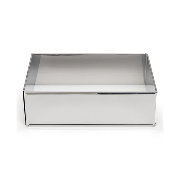 En inox, le cadre extensible à gâteau se nettoie très facilement à l’eau chaude ou au lave-vaisselle. Le cadre extensible passe aussi au four, au réfrigérateur, et au congélateur. Au format minimum il permet un rangement gain de place dans vos tiroirs ou placards.