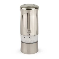 Le moulin à sel électrique Zéli vous permet d’assaisonner vos plats par une simple pression du bouton situé sur le dessus du moulin. Il fonctionne avec six piles fournies et dispose d’une lampe intégrée afin de contrôler la quantité exacte d’épice ou de condiment que vous voulez ajouter dans votre assiette. Caractéristiques techniques : ABS nickelé brossé, moteur garanti 3 ans.