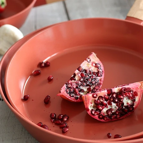Les amateurs de cuisine et de beaux ustensiles de cuisson l’adorent : c’est la collection de la marque Ogo Living qui a créé la gamme Ector, dédiée à la cuisine du quotidien. La poêle 28 cm Rouge manche chêne Ector au design à la fois brut et design, assure un contraste réussi entre le chêne massif naturel et l’aluminium coloré. Ses lignes droites inspirées par la nature en font un ustensile de cuisine aussi beau que performant, conçu pour assurer des montées en températures rapides, homogènes tout en respectant les aliments grâce à son revêtement anti-adhérent en céramique, léger et résistant. En aluminium forgé de belle épaisseur, garanti sans PTFE ou PFOA, le fond de cette poêle est résistant et s’entretient facilement, à la main.