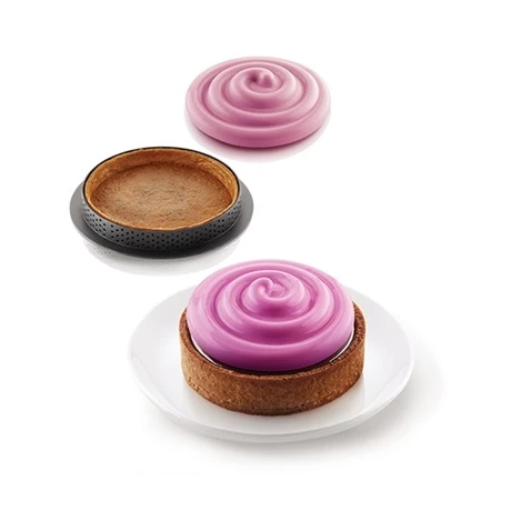 Ce kit comprend un moule spirale composé de 6 cavités pour garnir vos tartelettes d’une jolie petite forme spirale sans aucune compétence en pâtisserie décorative requise, ainsi qu’un cercle pour mouler vos pâtes à une dimension parfaitement adaptée à votre moule.
