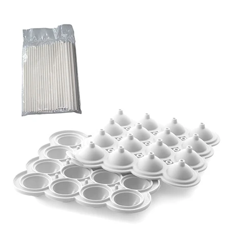 Pour créer vos sucettes de 3 cm avec le kit Wonder Pops Silikomart, il vous suffira de remplir les moules en silicones assemblés ensemble via le petit trou sur le dessus puis mettez dans ce même trou un des 50 bâtonnets fournis. Placez les sucettes dans le réfrigérateur ou congélateur selon le liquide utilisé et laissez-les prendre. Une fois prêtes, sortez les 24 sucettes, ouvrez les moules et décorez vos friandises. Après utilisation, le moule en silicone peut être mis directement au lave-vaisselle pour un nettoyage facilité.